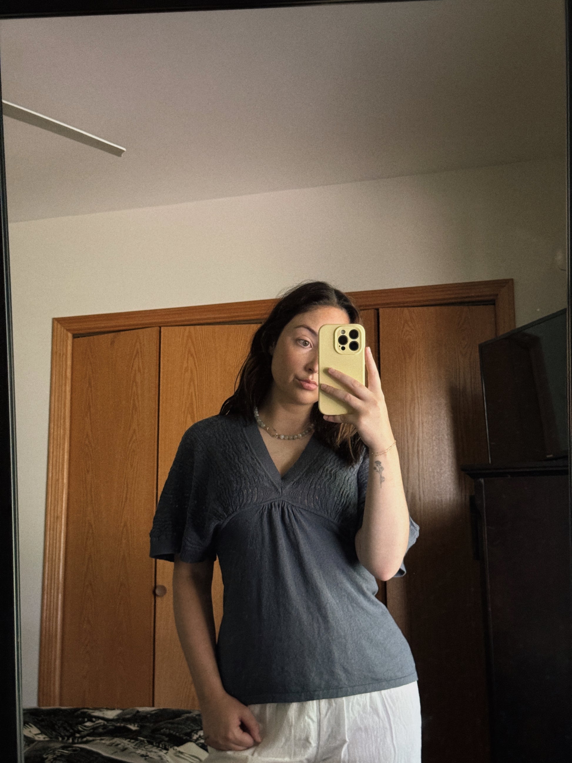 blue knit top
