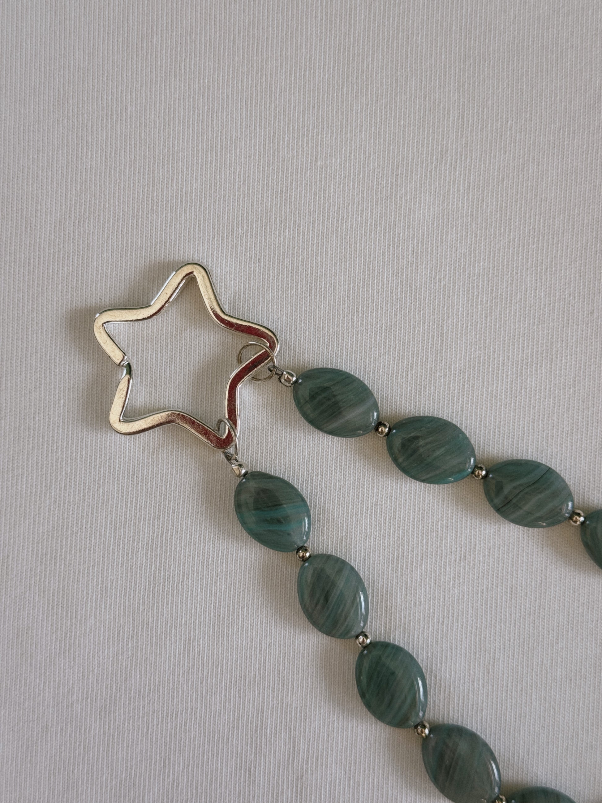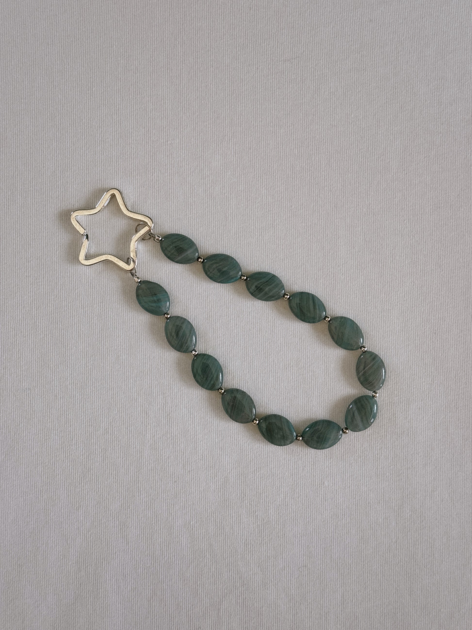 Vintage glass beads, silver plated spacer beads & star keyring.