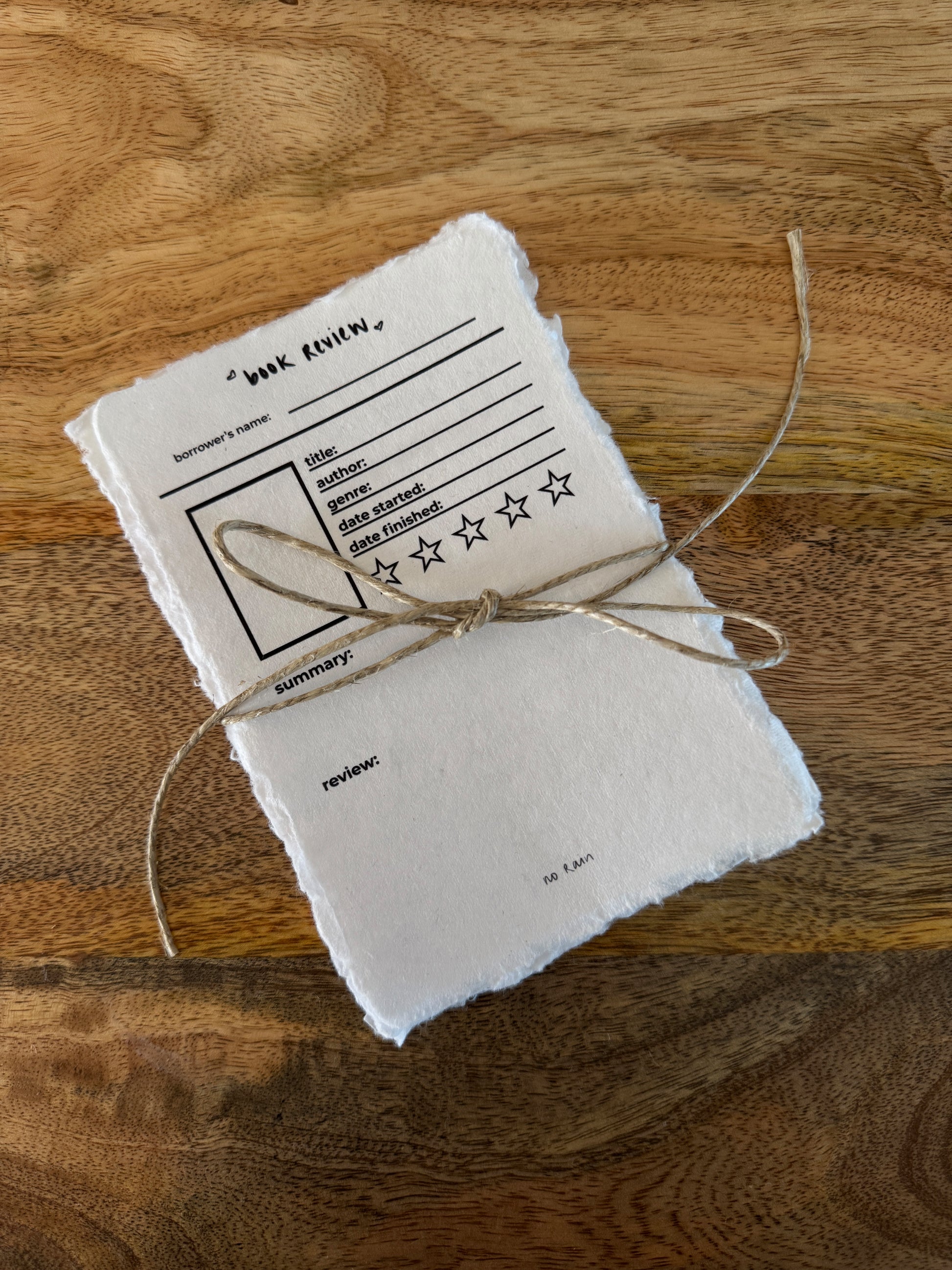 Book review card on handmade, deckle-edge paper. Pack of 10 cards.