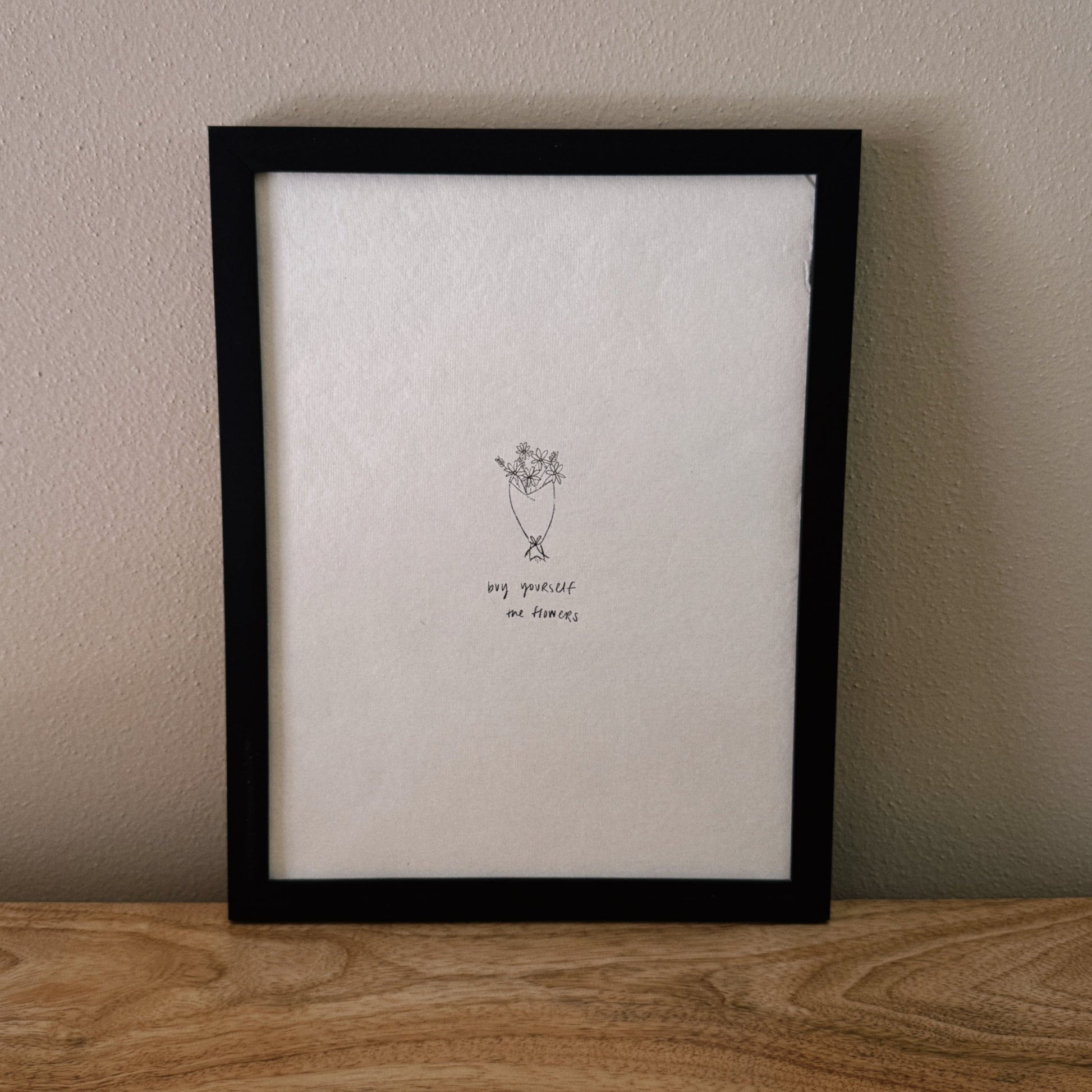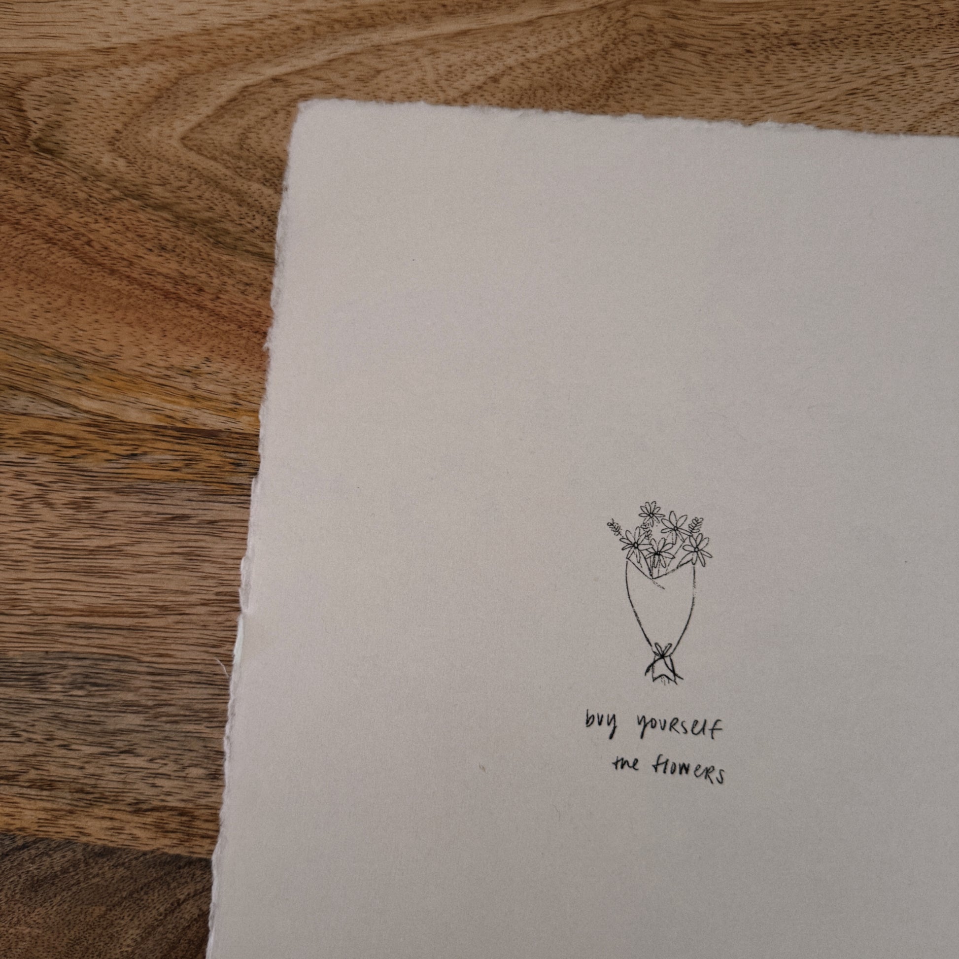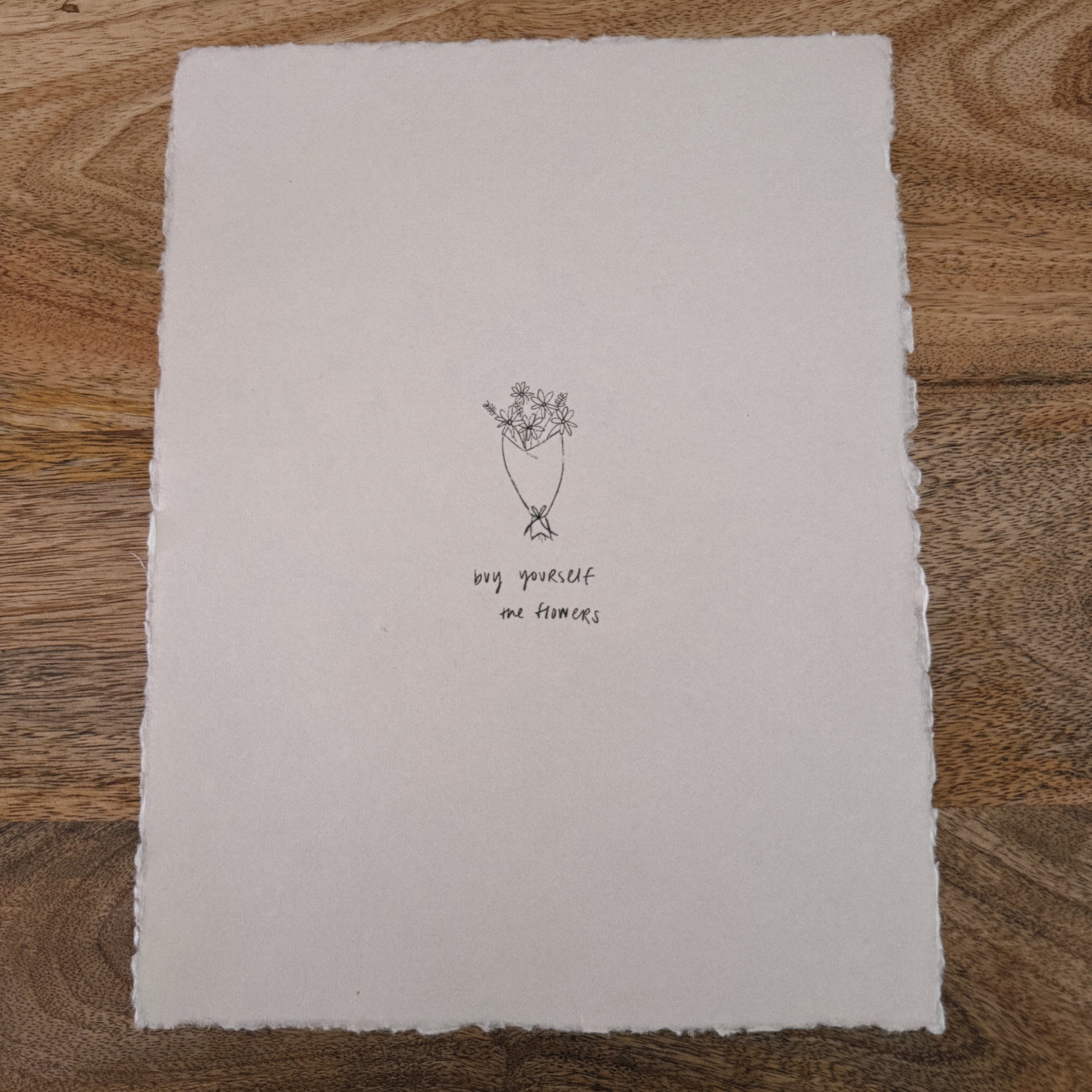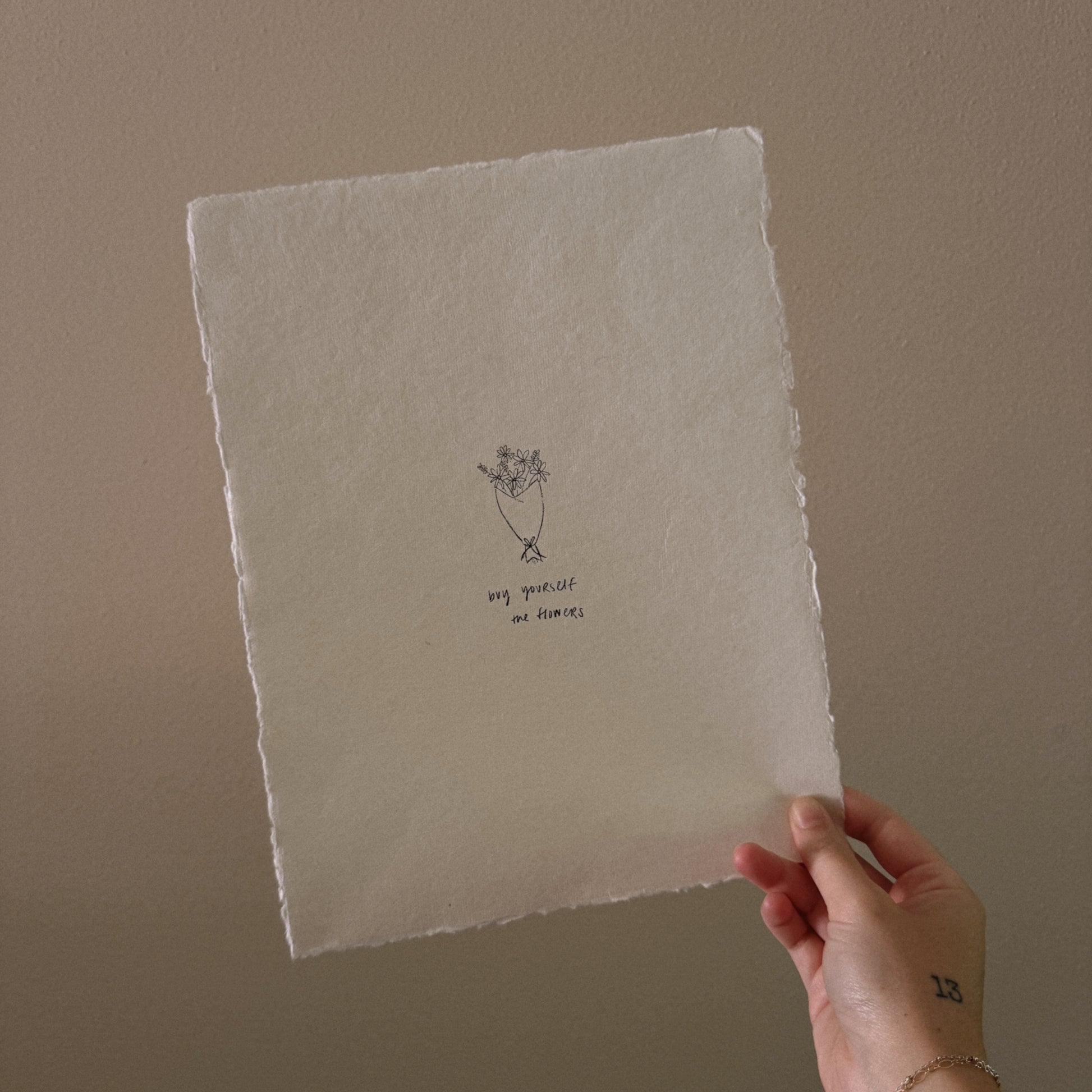 Print of an original digital sketch on white, handmade deckle-edged paper. Each piece is unique, with slight variations in color and texture due to the handmade nature of the paper. Frame not included.