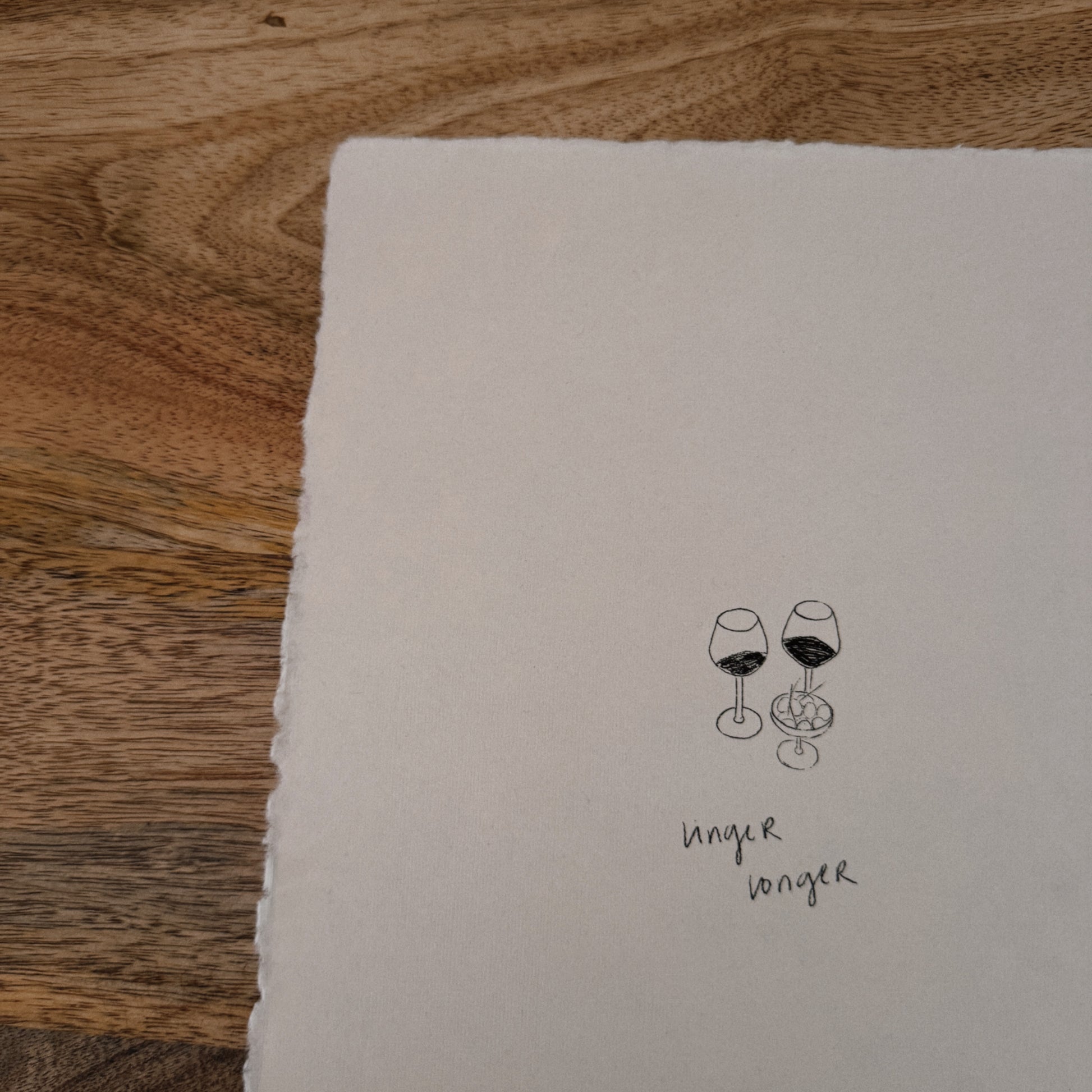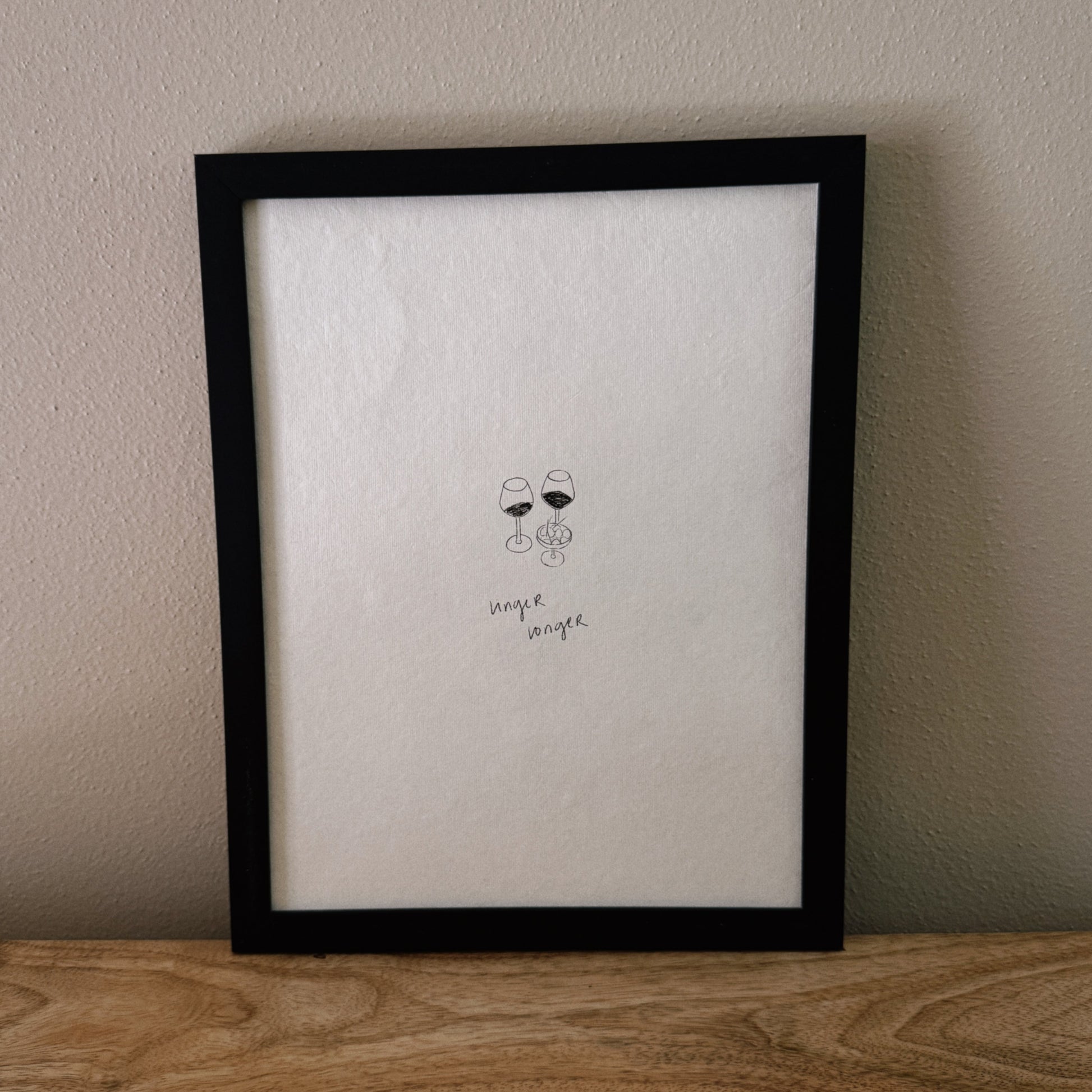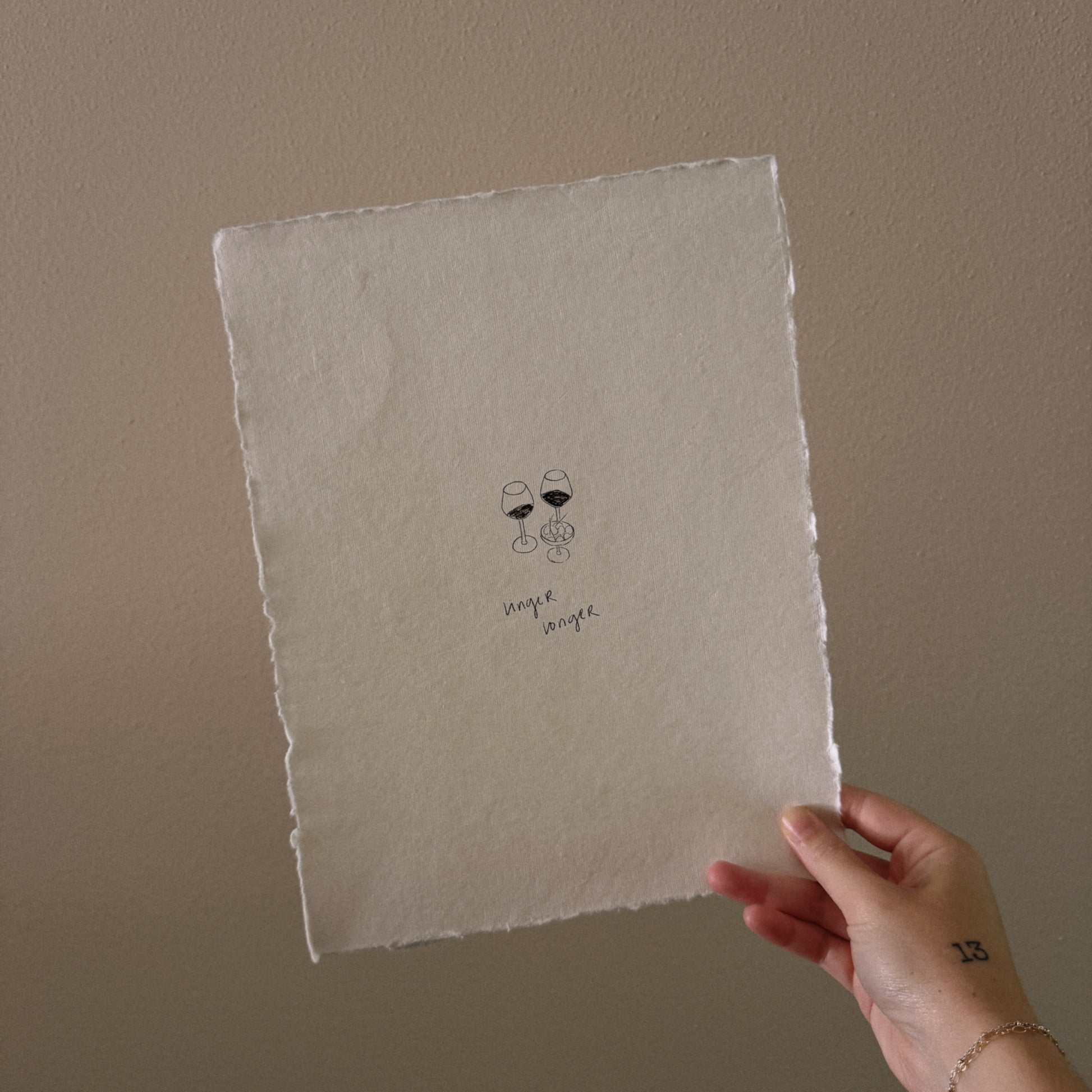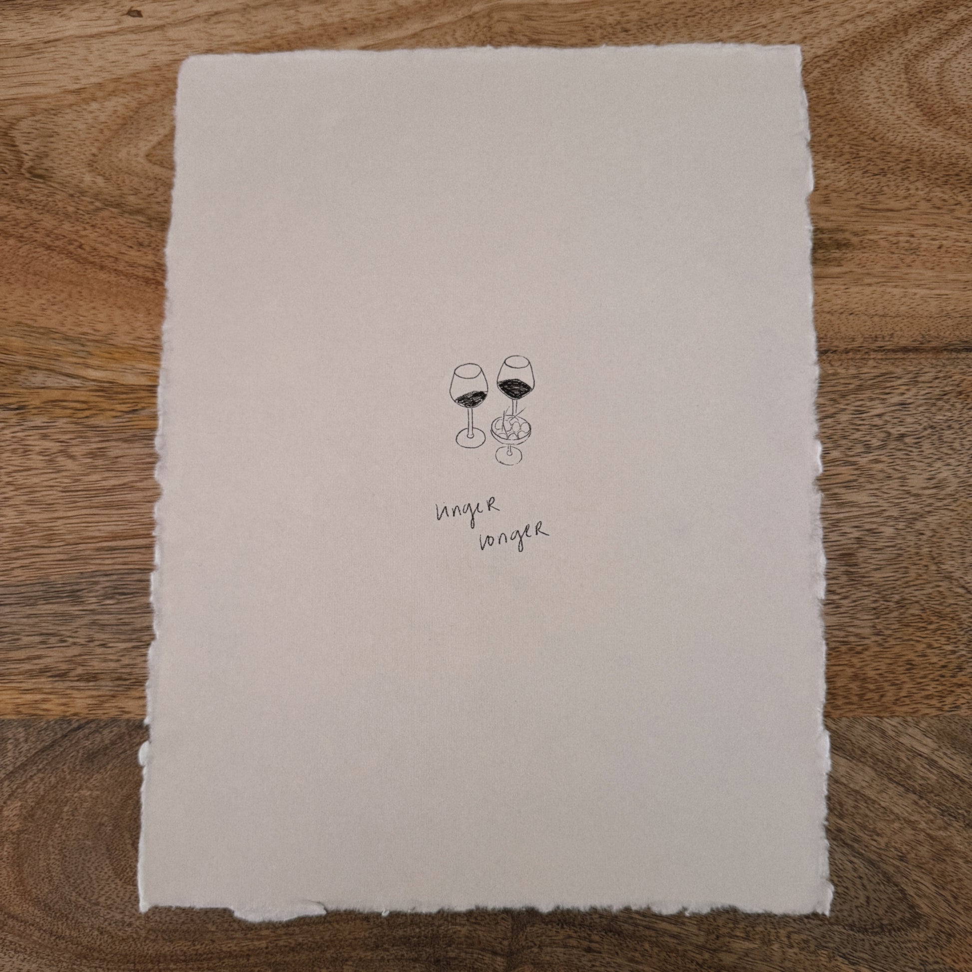 Print of an original digital sketch on white, handmade deckle-edged paper. Each piece is unique, with slight variations in color and texture due to the handmade nature of the paper. Frame not included.