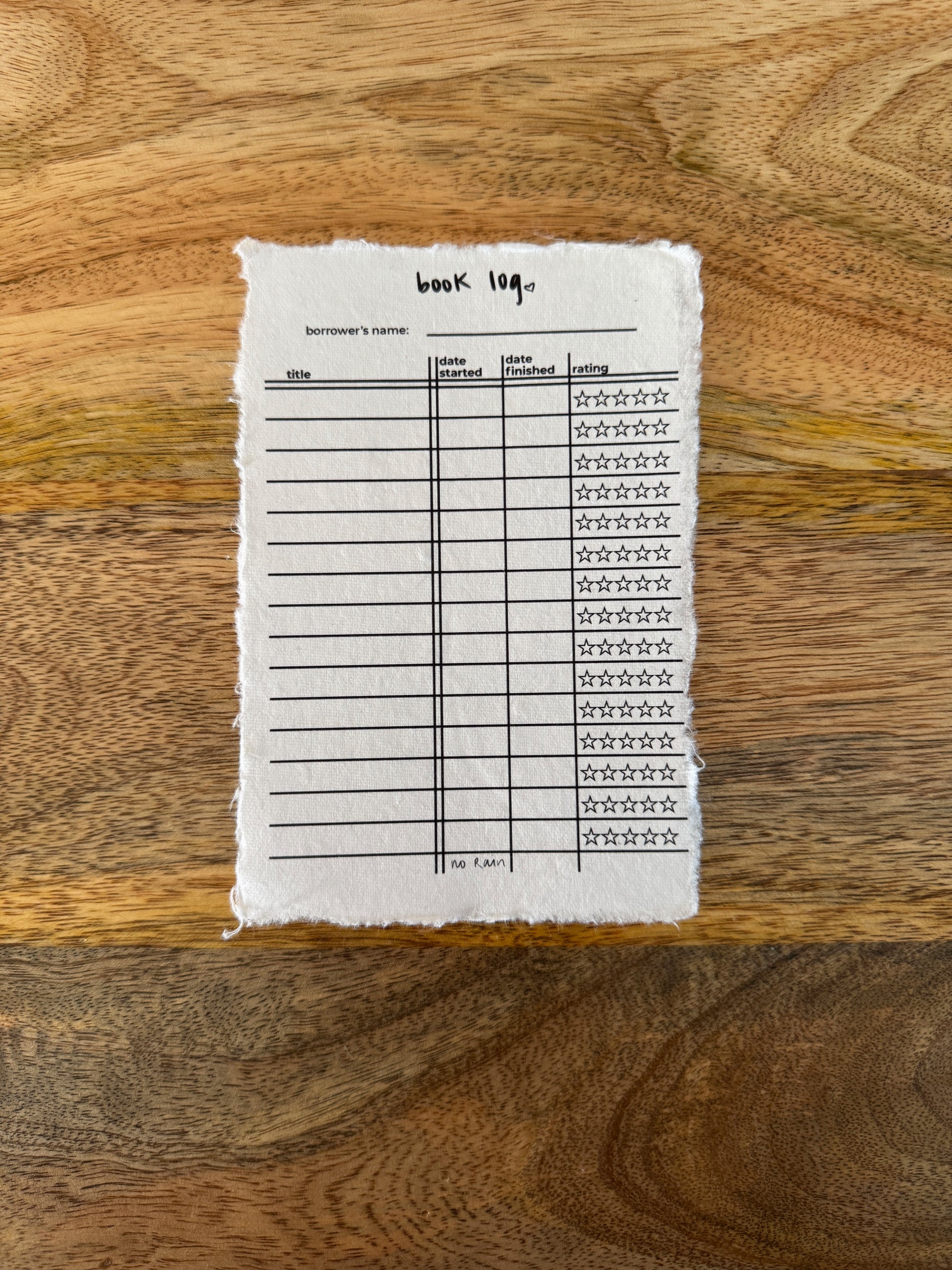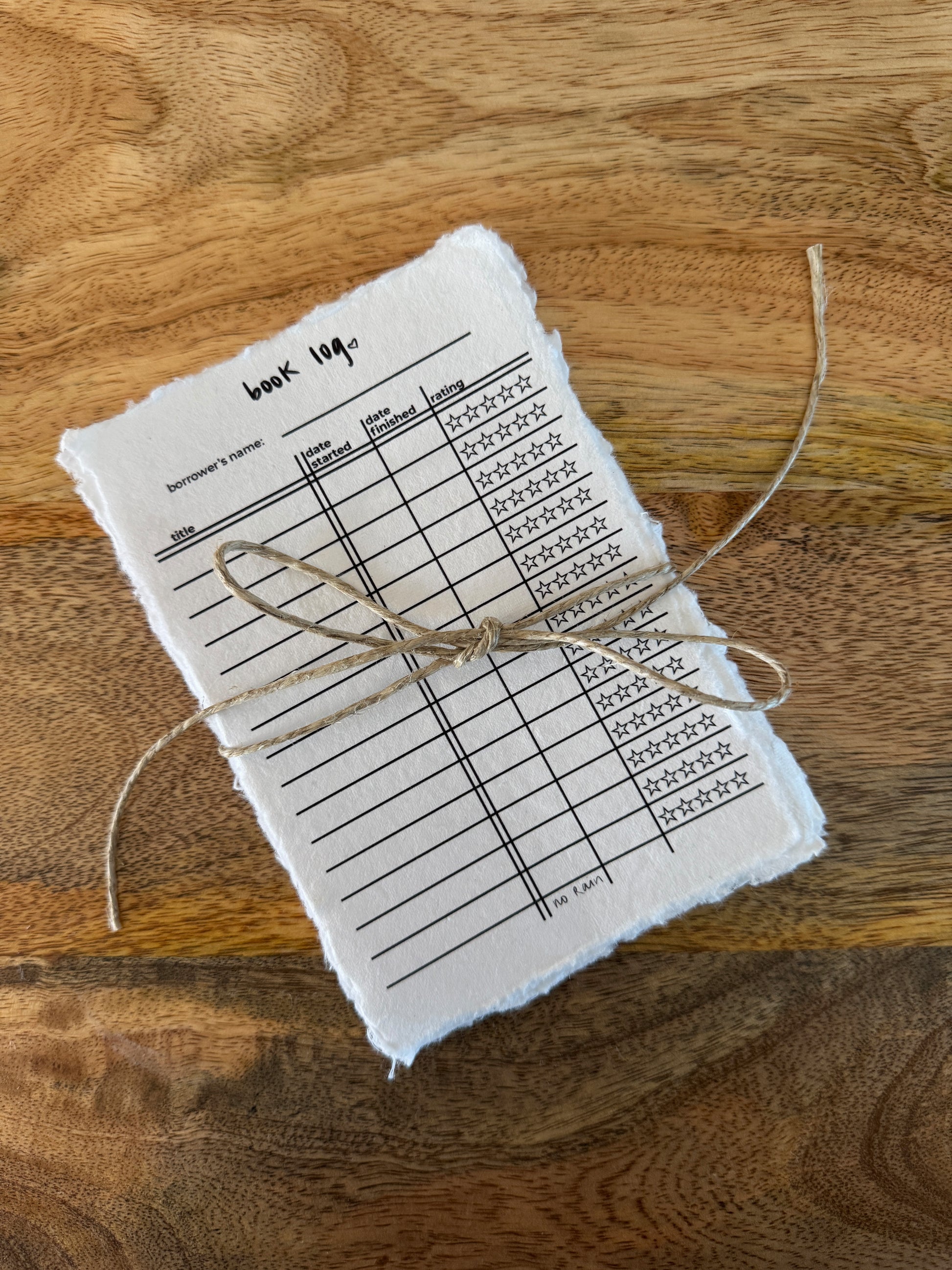 Mixed pack of book cards on handmade, deckle-edge paper. Pack includes: 10 book review cards, one to be read card, and one book log card.