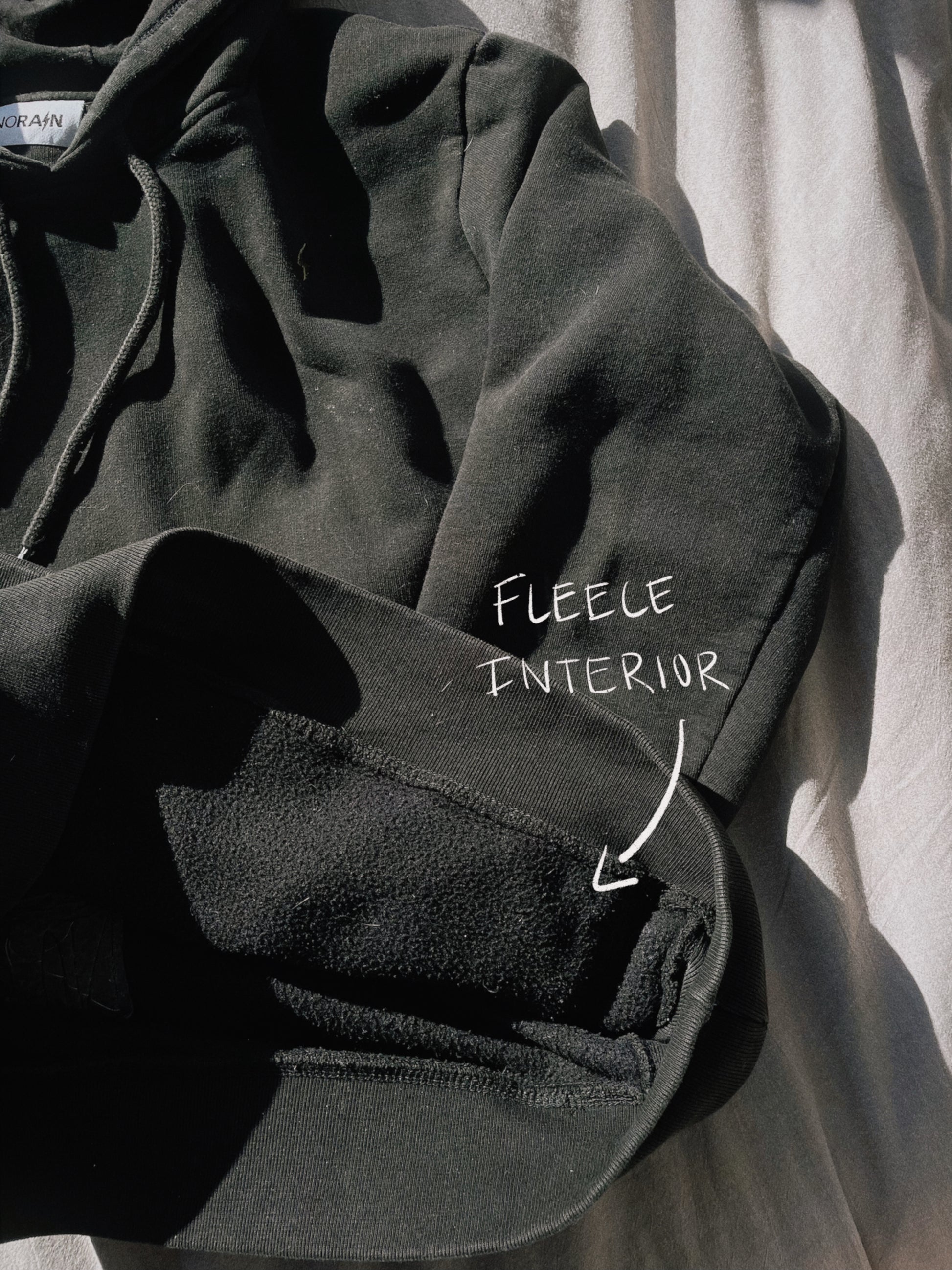 Our signature No Rain hoodie. Cozy fleece-brushed interior, unisex fit.