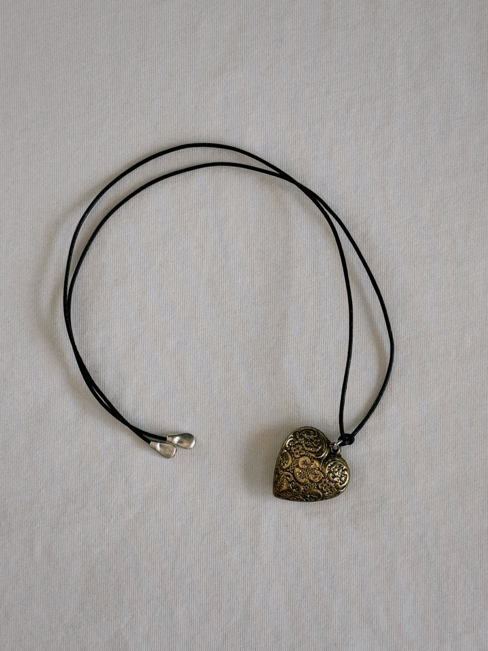 Puff heart pendant necklace with black leather cord. Tie the cord at whatever length you'd like.