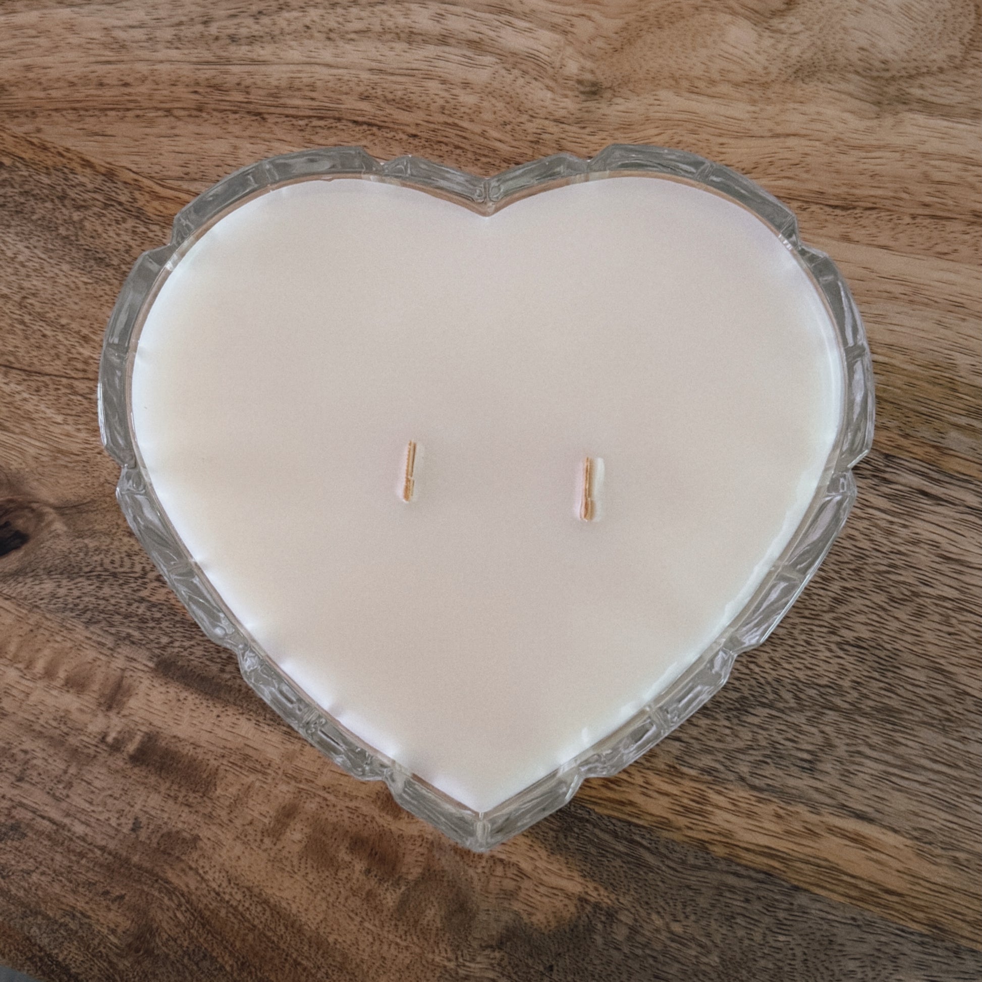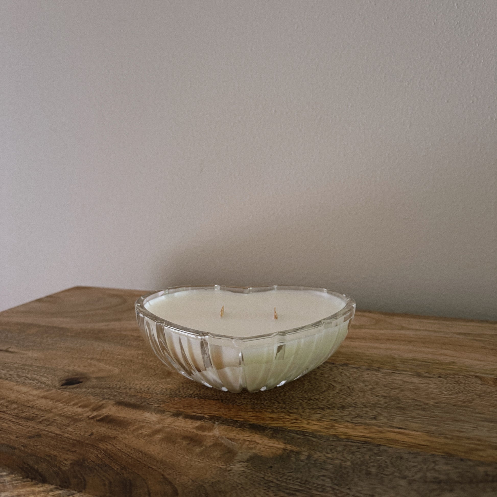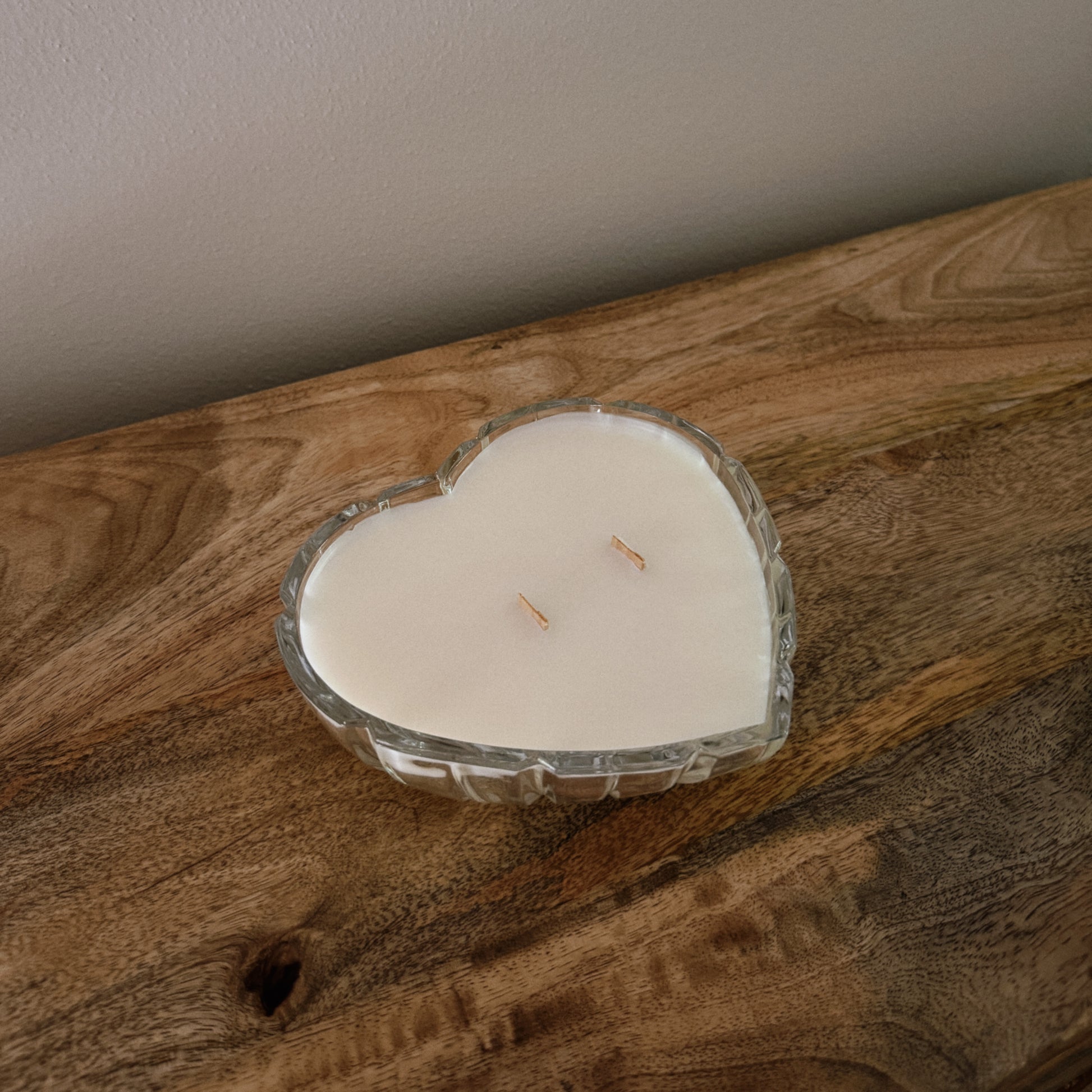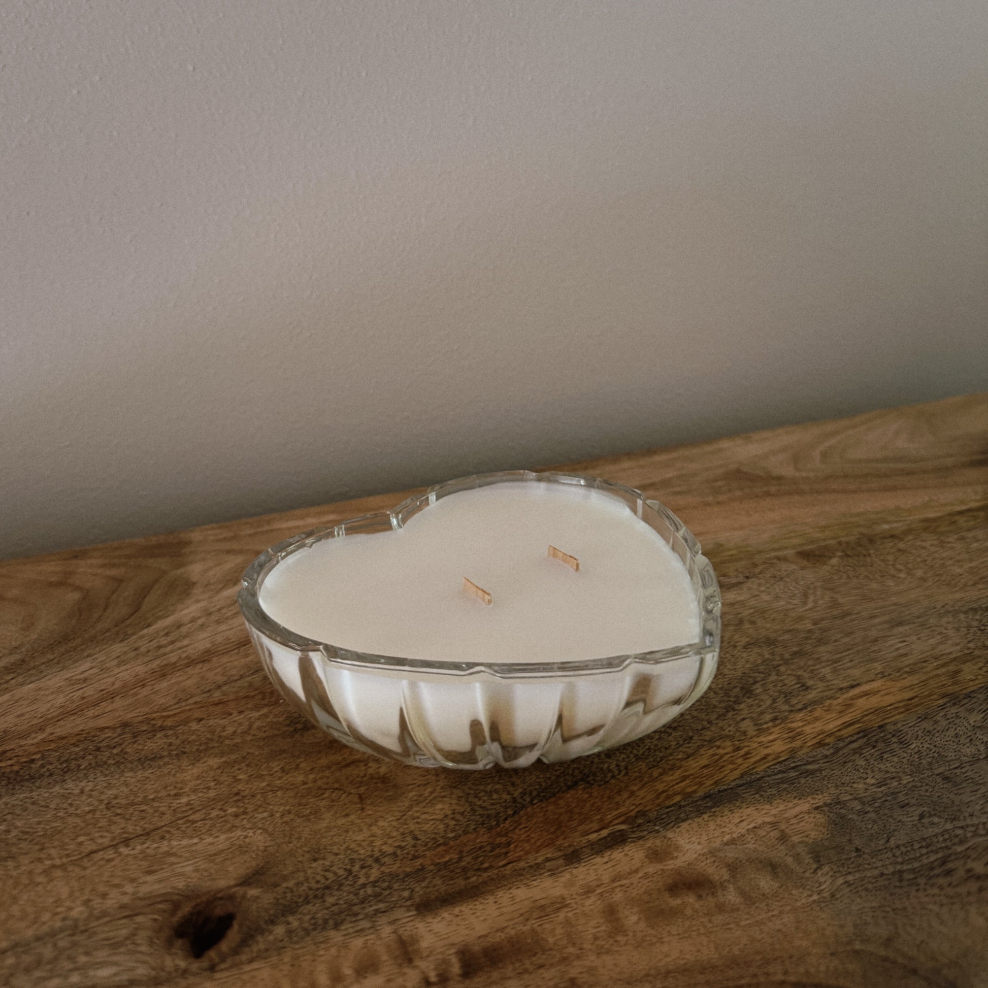 A warm, cozy glow meets timeless charm. This hand-poured soy wax candle is set in a vintage cut-glass heart shaped dish. Ideal for slow mornings or evening wind-downs.