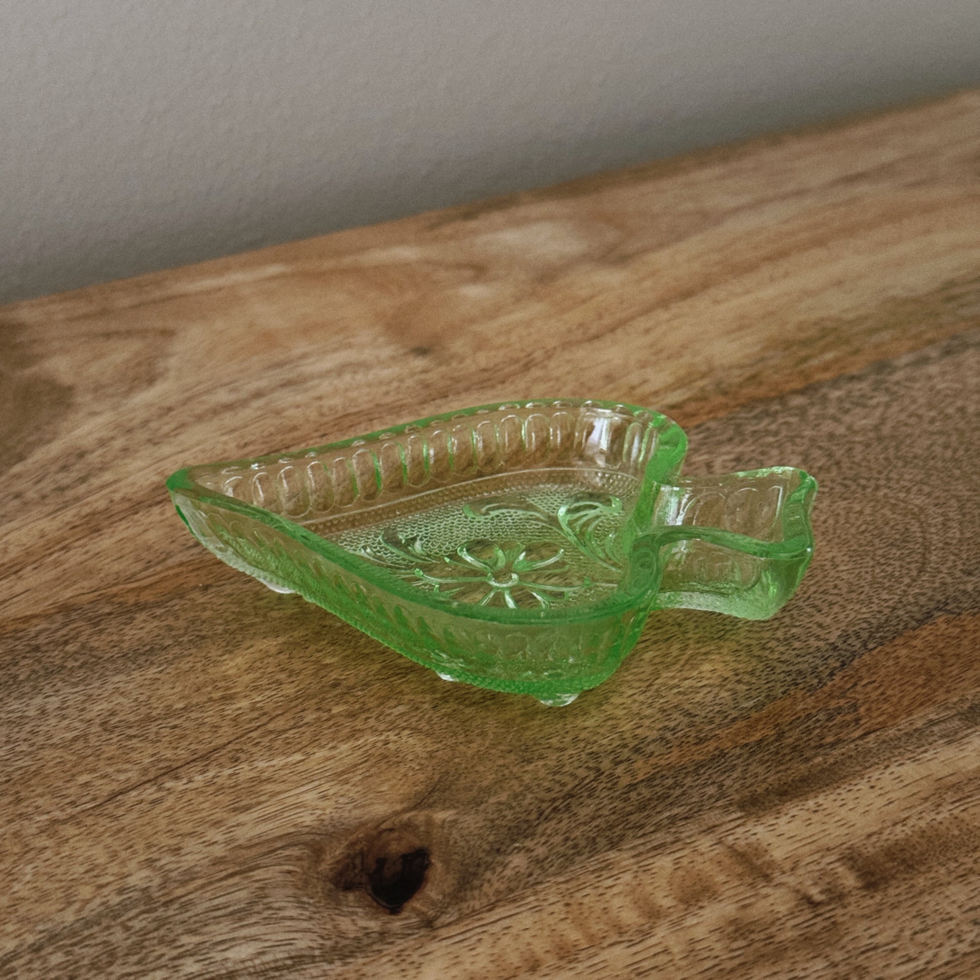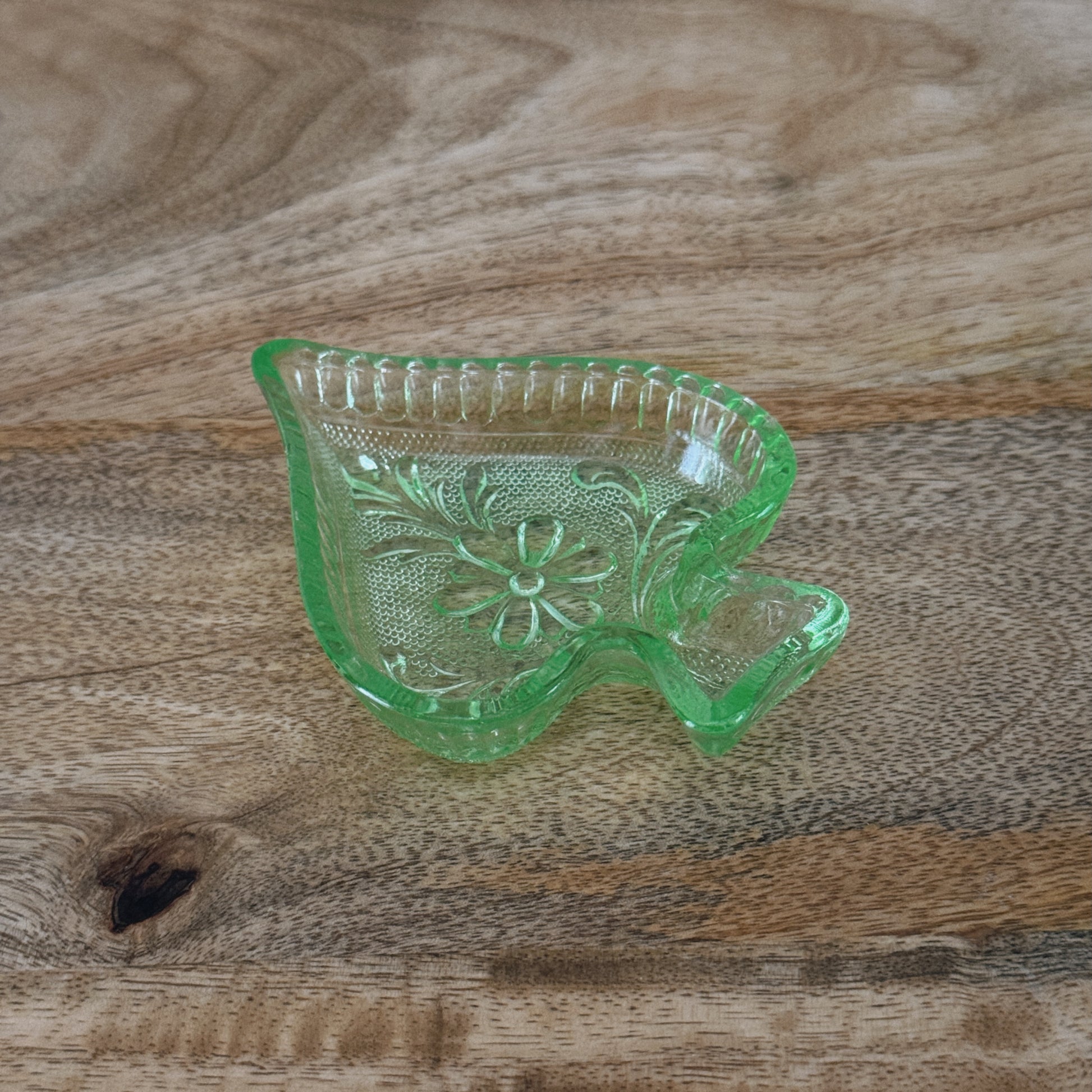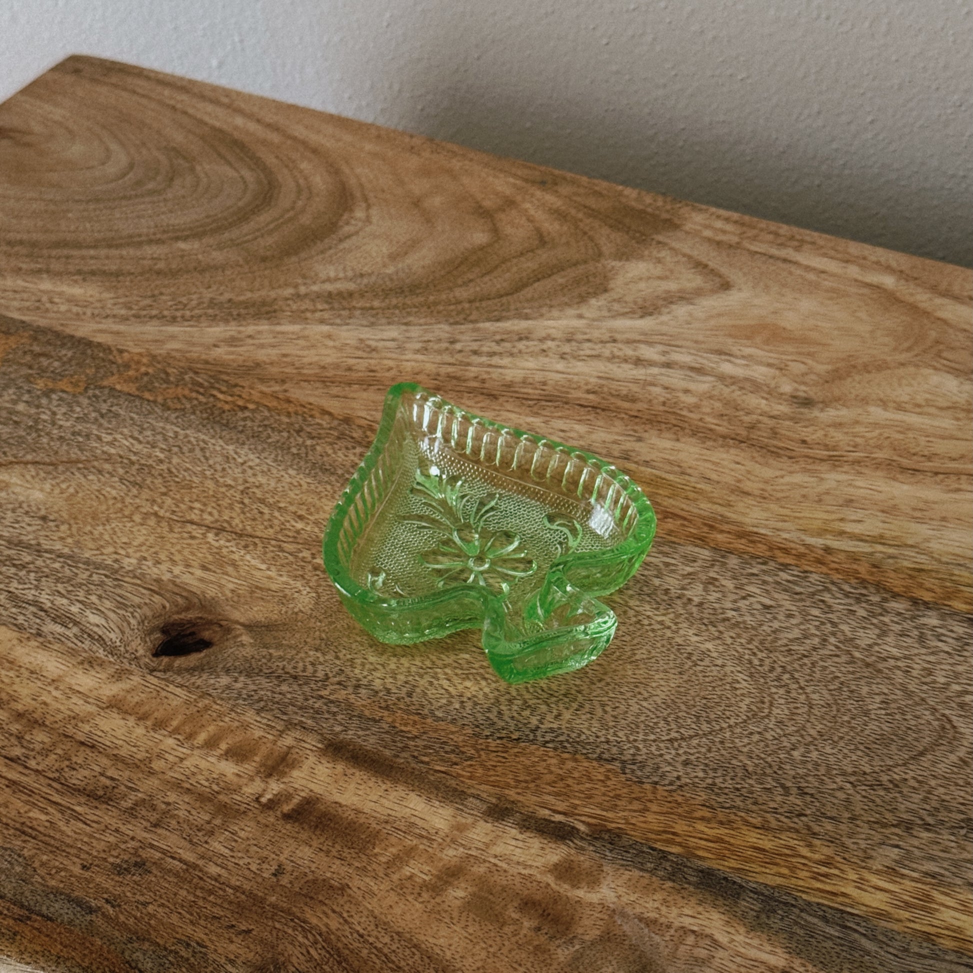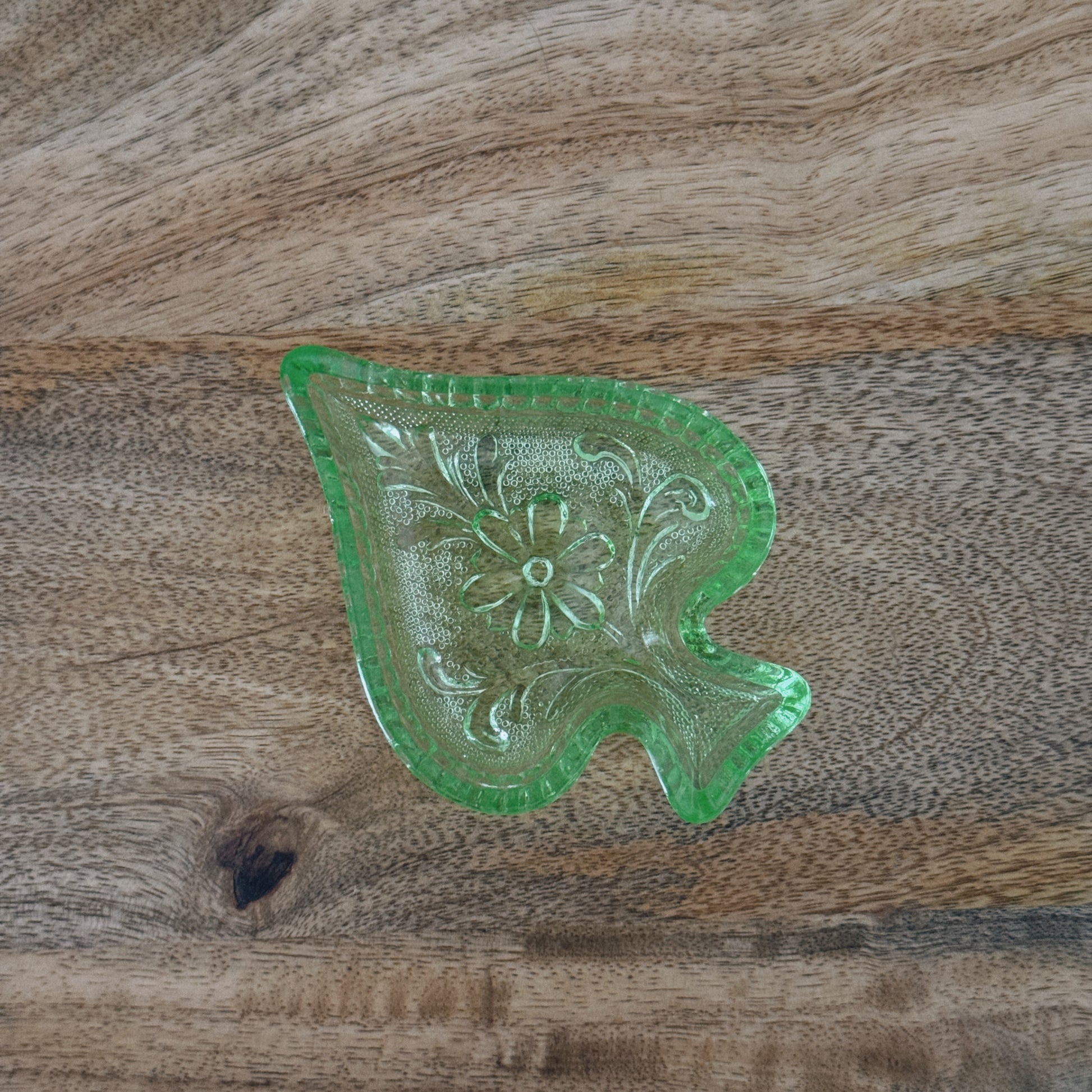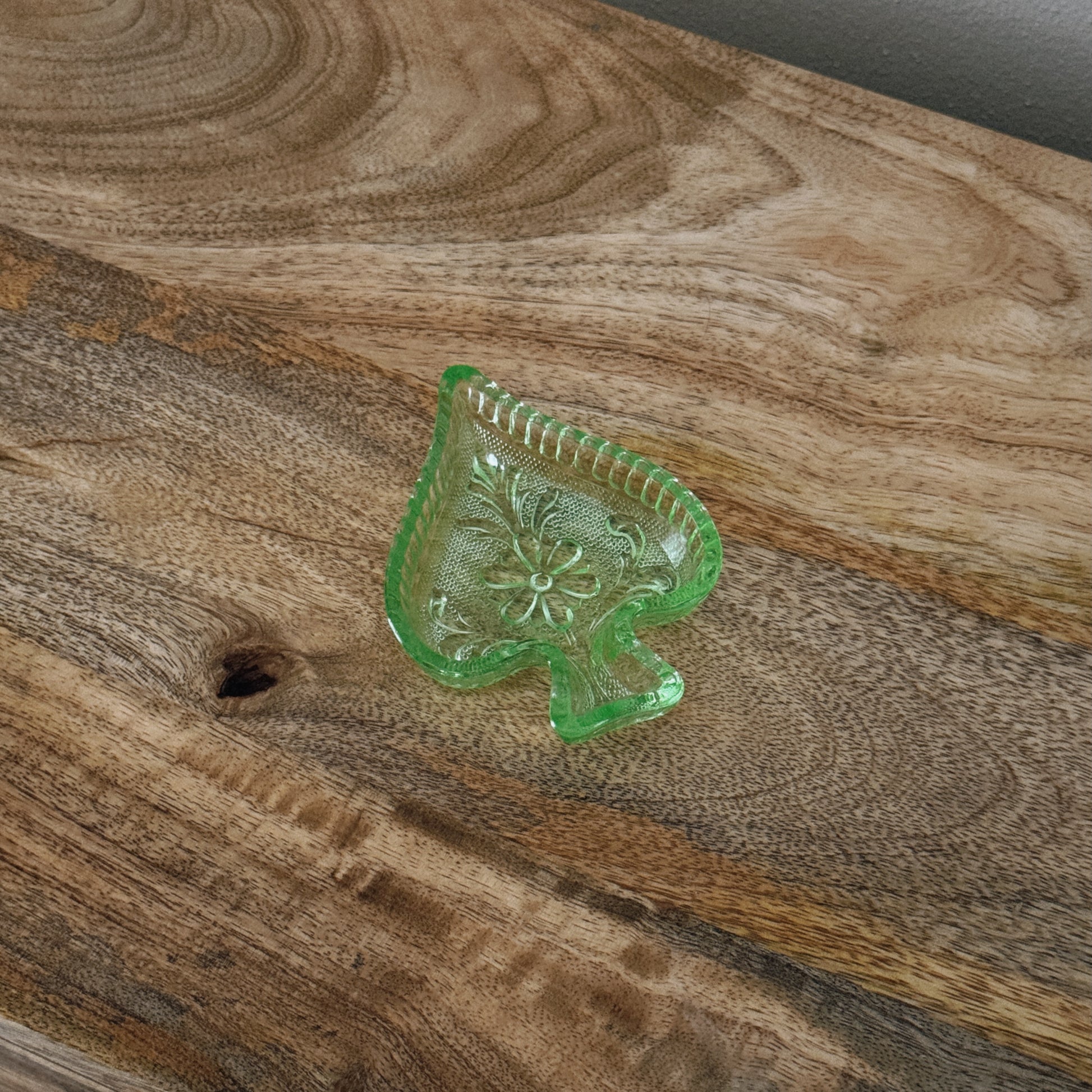 Vintage green spade dish doubles as a charming ashtray, adding a touch of retro style to your space.