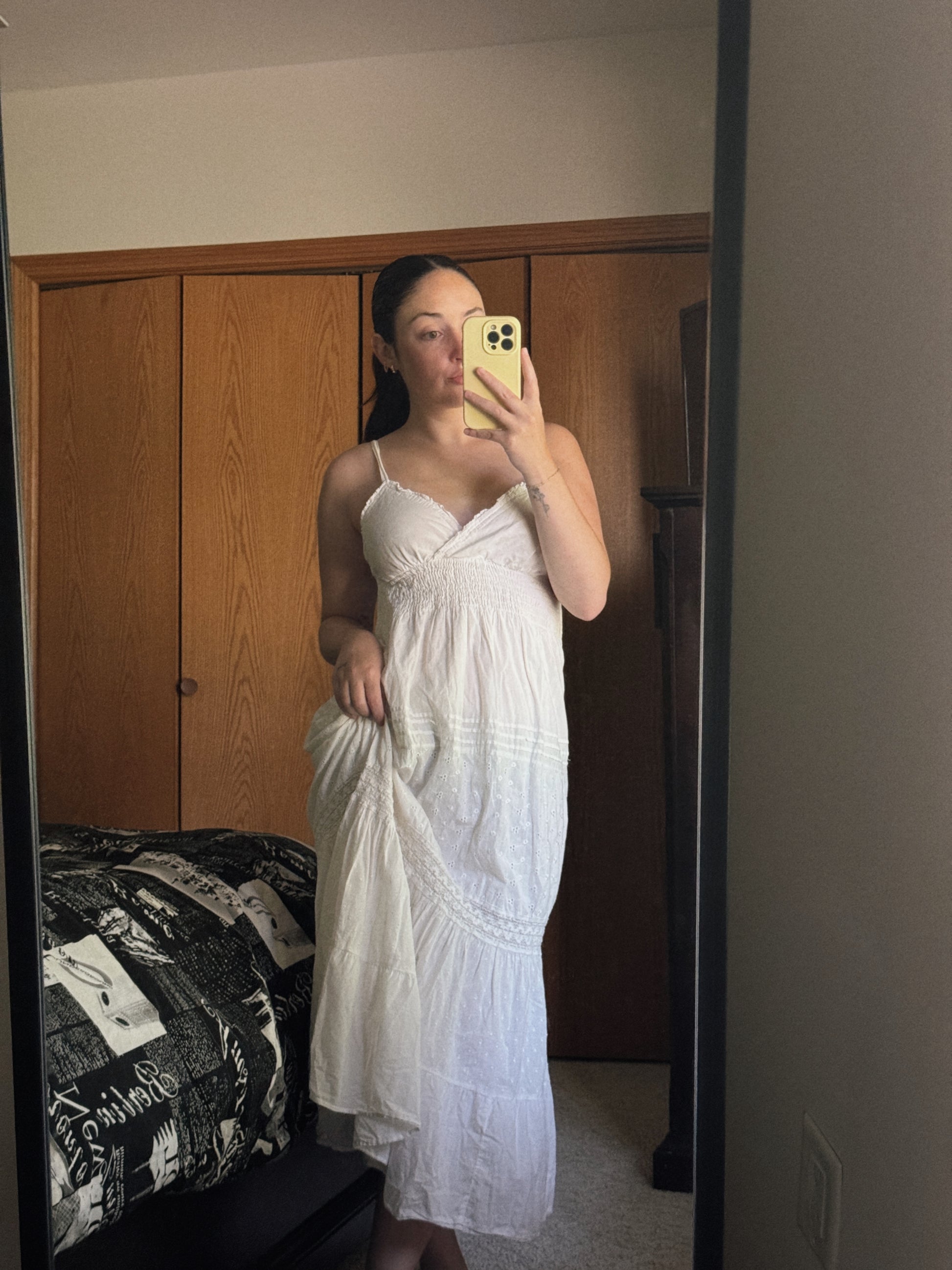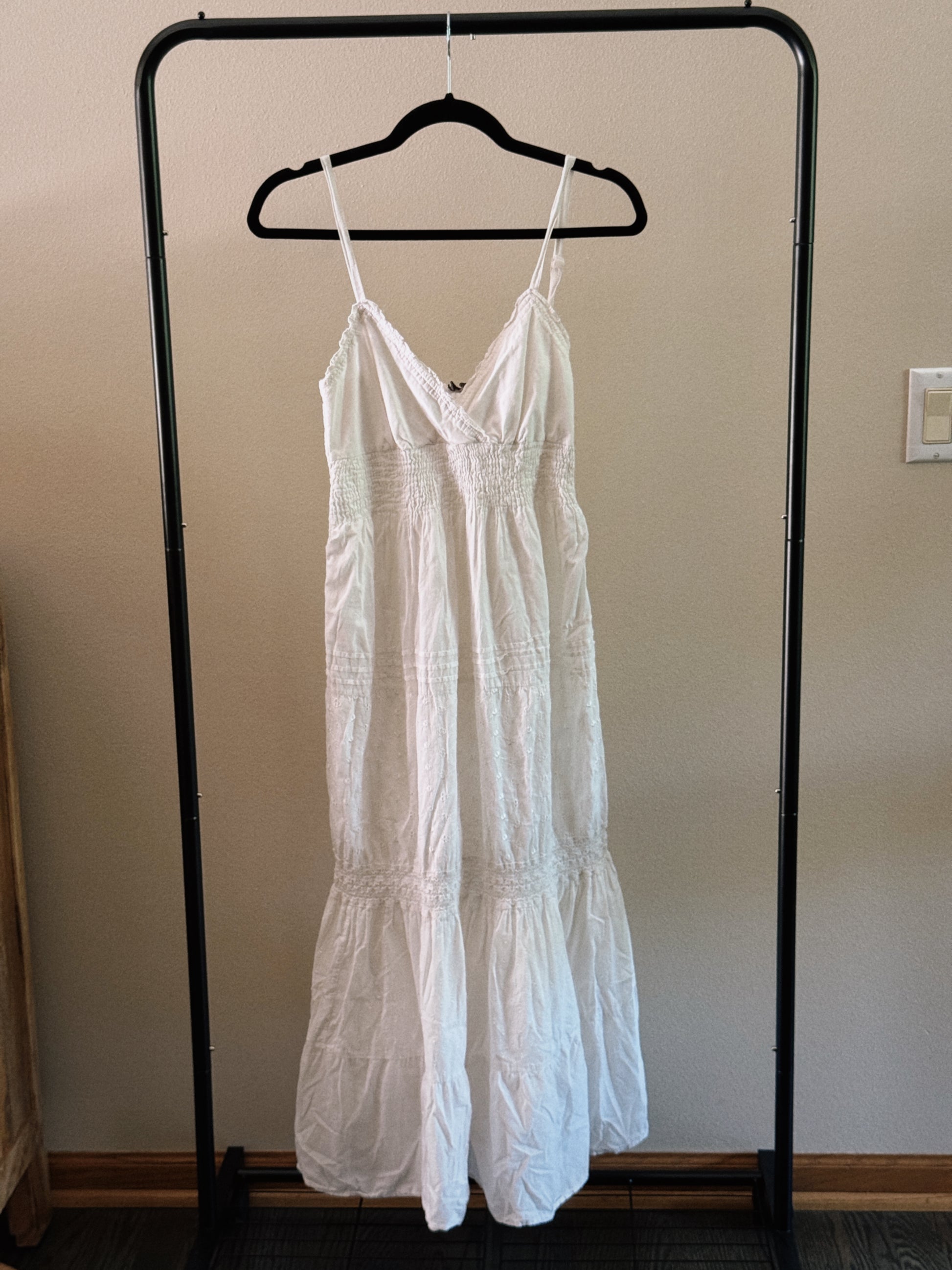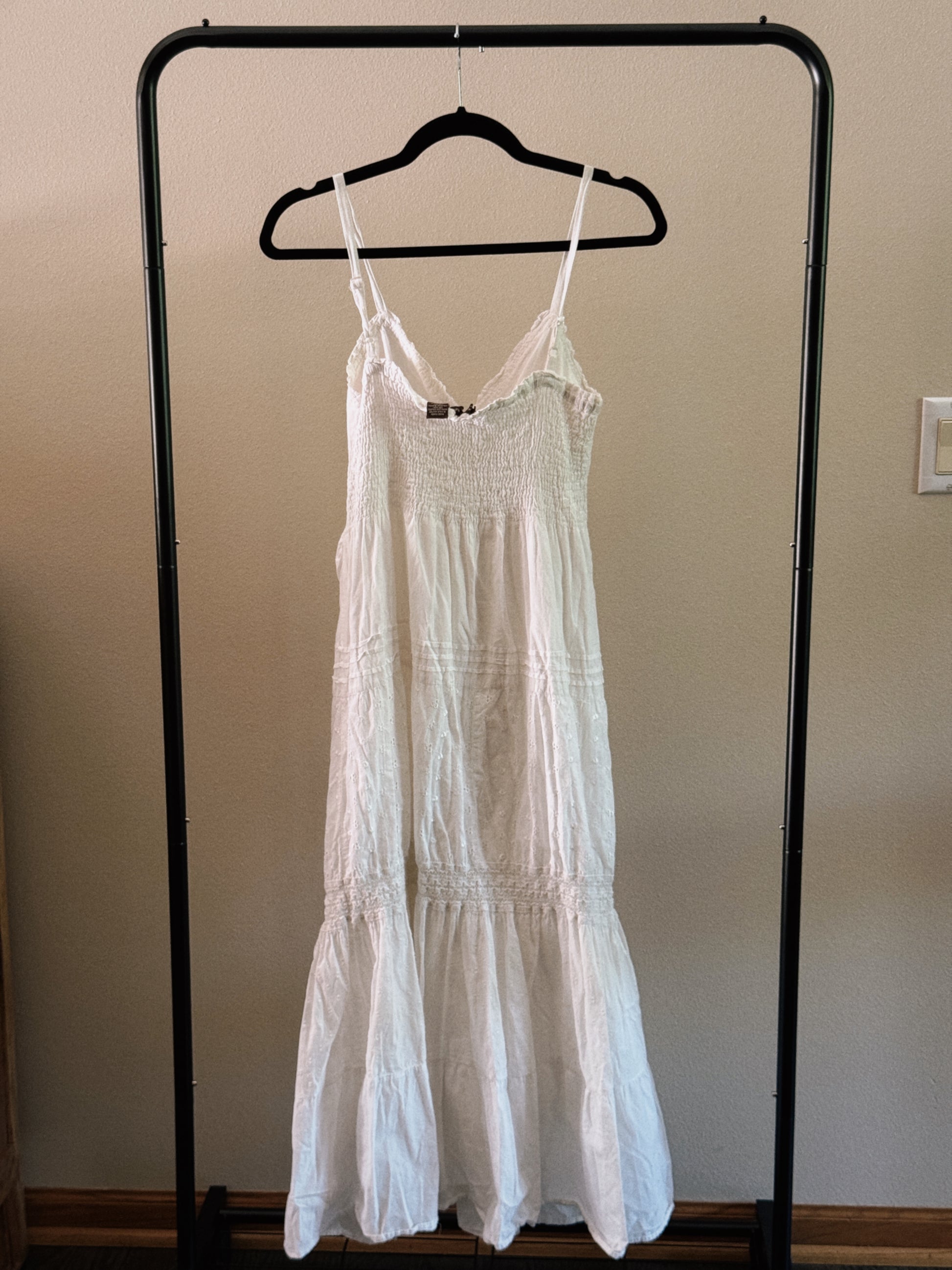 white tiered maxi dress