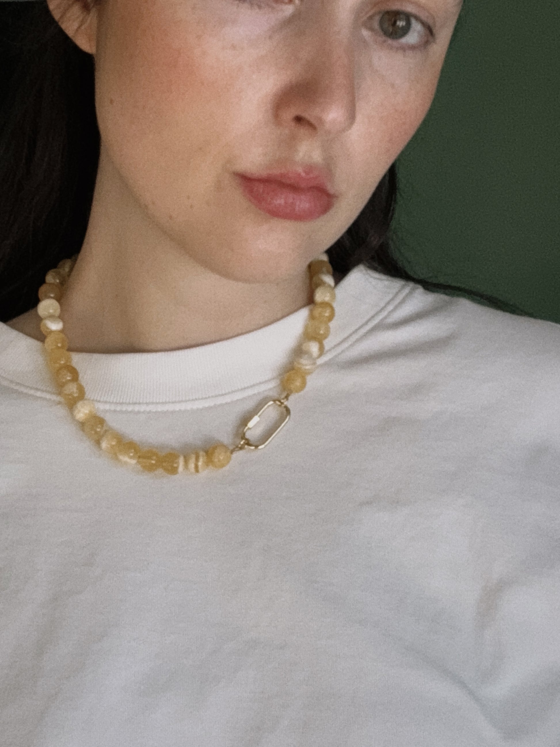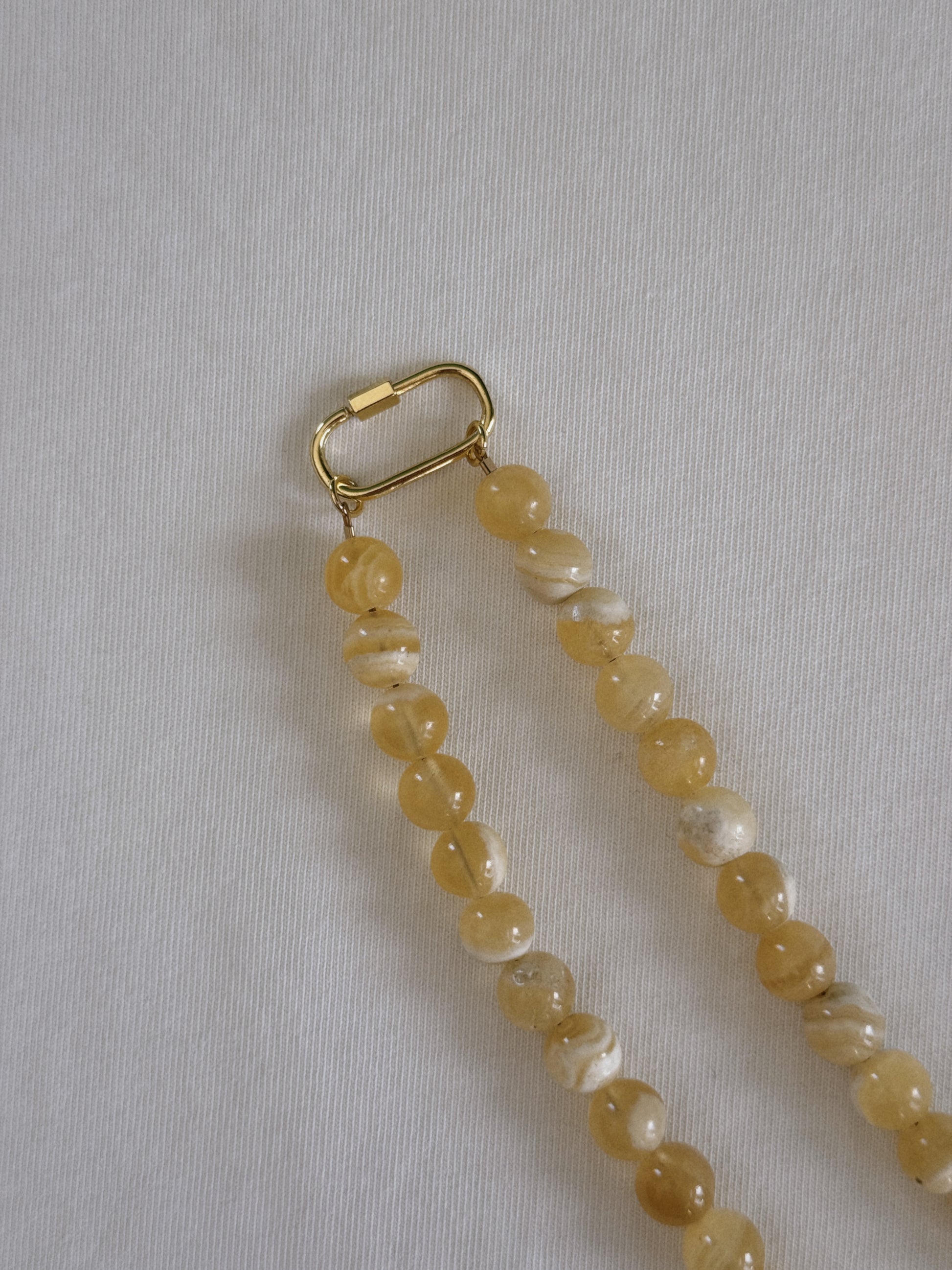 yellow honey beaded carabiner necklace